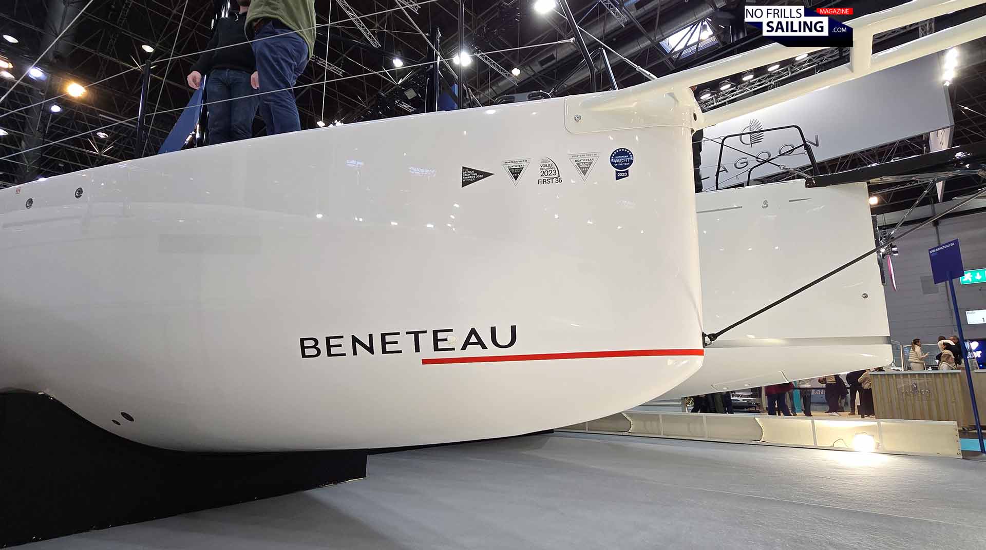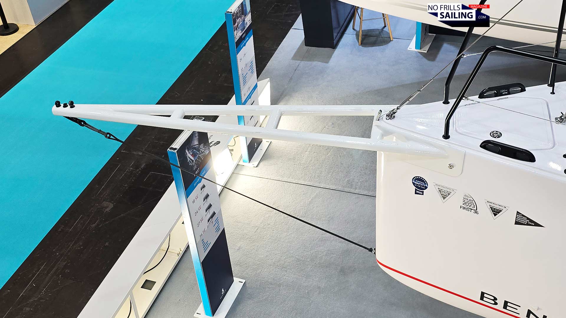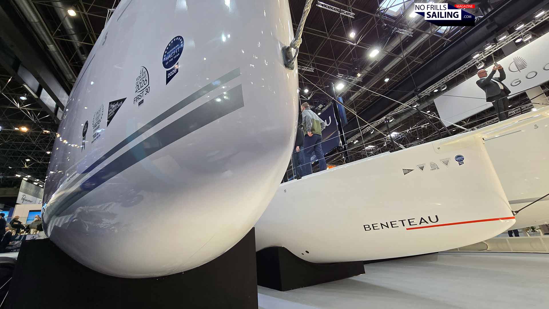 That´s the queston, right? I am sure we will see first results in the coming season of 2026. As for now, the shipyard provided a very stunning VR-experience for the boat show visitors, enabling them to live through the powerful sailing performance of the First 36 SE first hand. There was a VR-helmet mounted at the starboard coaming of the boat. When started, it showed a 360 degree film from one of the sea trials of hull #001 in Slovenia. That´s 19 knots SOG in 23-24 knots of wind! Absolutely exhilarating! You may check this video here. One of the reasons of this stunning performance is of course Sam Manuard´s hull.
