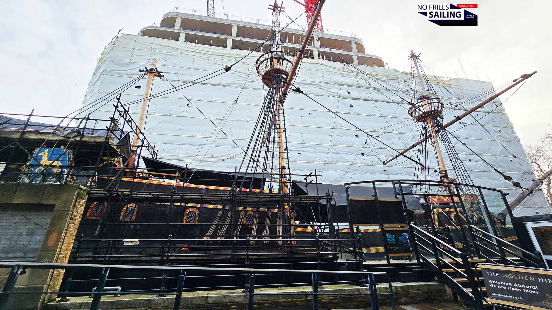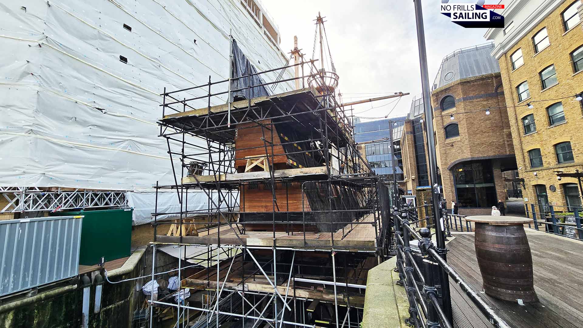Onward passing through the Panama canal (a comfort not available to Sir Francis Drake at his time) and arrived at the World´s Fair in Vancouver/Canada in 1986. She toured the US west coast, transferred back into the Atlantic ocean via Panama canal in 1988, visited many ports in the Gulf of Mexico, crossed the ocean a second time to arrive back in English waters in 1991. After another UK-tour the ship finally arrived in St. Mary Overie´s dock – where she is right now – in 1996. After a brief visit to Southampton boat show in 2003, a major refit program was put in place. From 2017 onward GOLDEN HINDE is now partially tourist attraction, partially construction site. What a story, right?