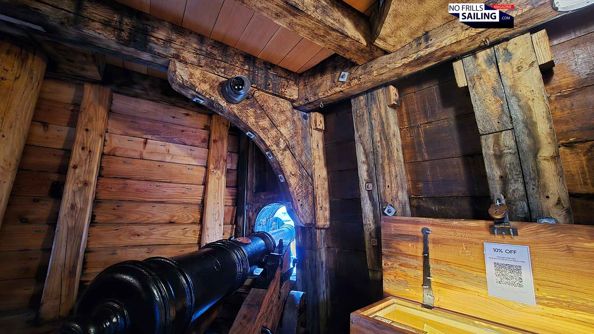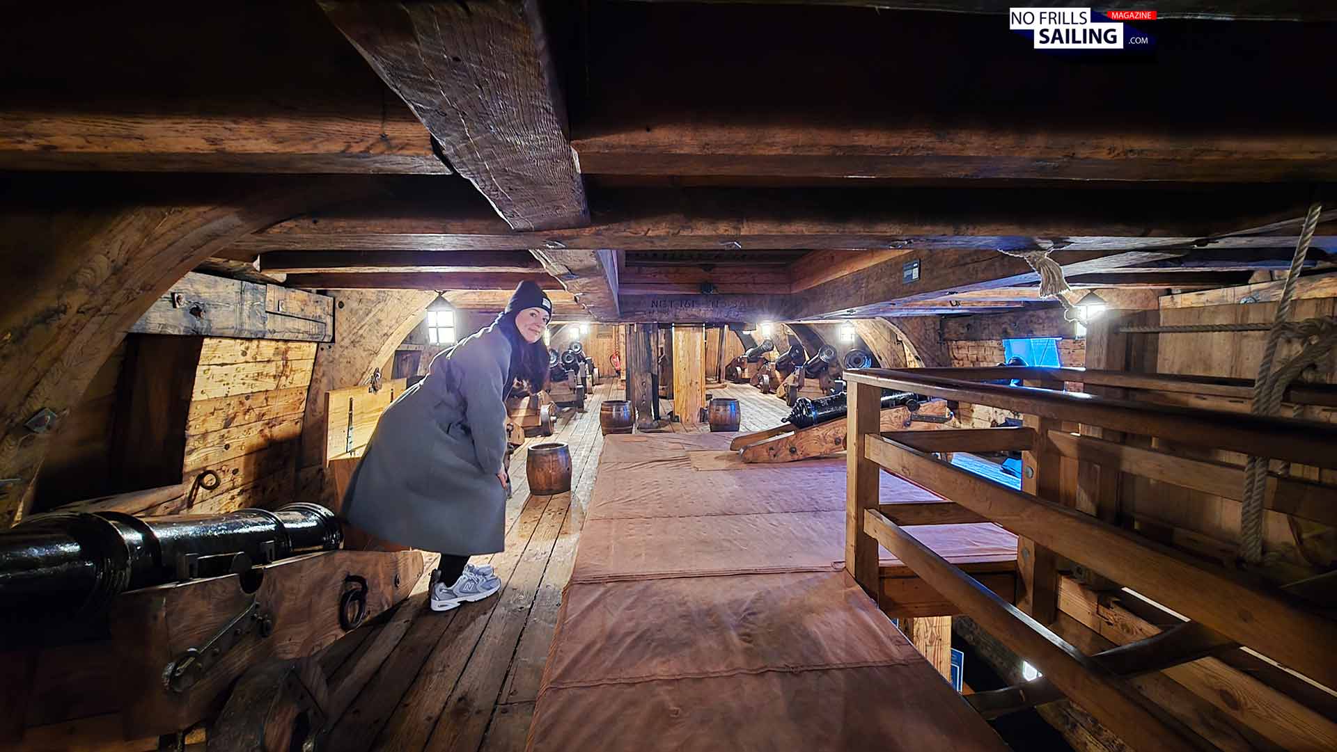 The ship carried around 20 cannons of many sizes, of which some are on display down here. It is absolutely breathtaking and mind-crushing to imagine how the crew of this ship may have lived down here. And how they have even fought in battle here! Imagine the turmoil, the smoke, the confusion! Imagine having to set up such a big, heavy cannon with a new load of gun powder and an iron ball. All the while the ship is rolling in the oceanic waves! It´s incredible. I mean, look at how she´s squatting back there?! Can you imagine?