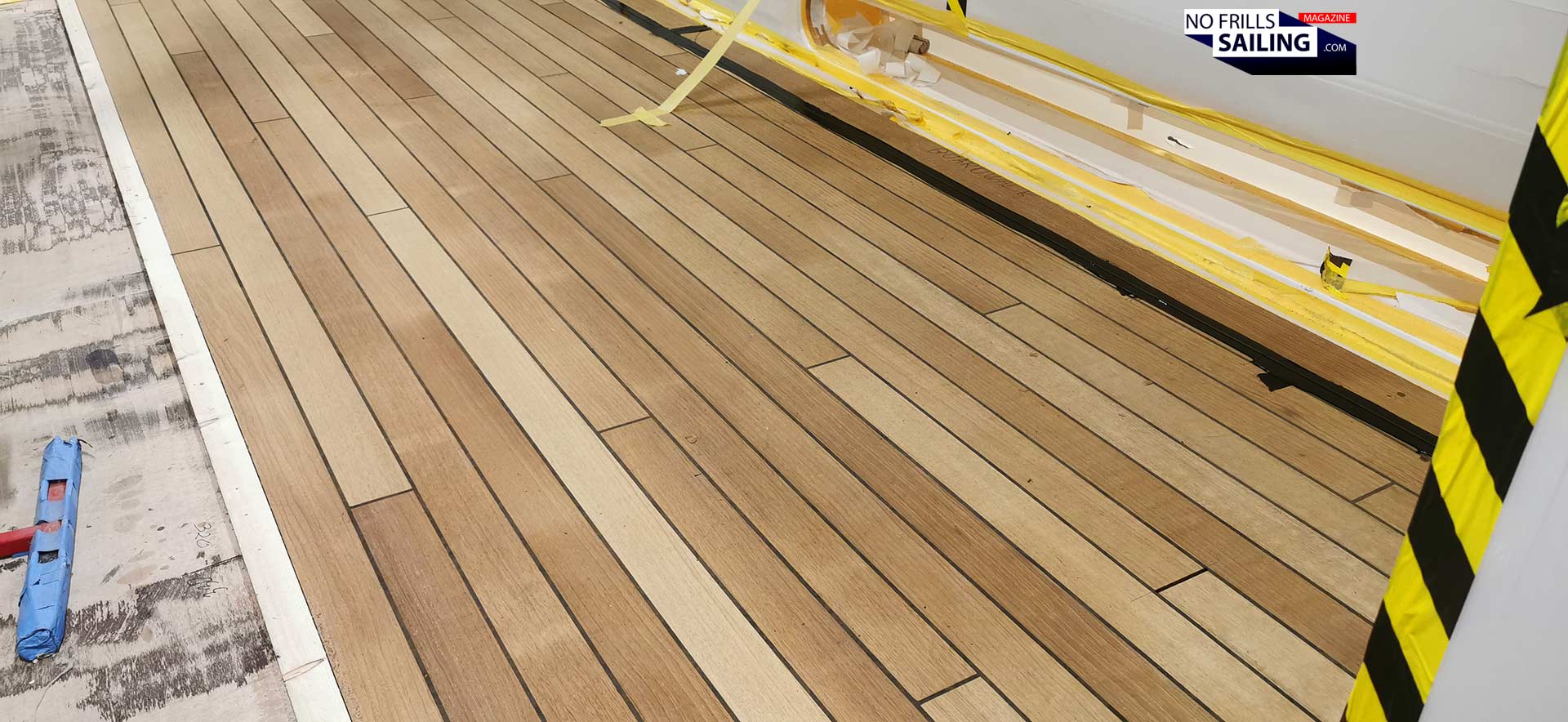 The guys warned me: Taking pictures of a fresh deck is a tricky thing. Just like photographing waves on the ocean, where you never really catch the real height and impressive masses moving by. It´s quite a similar thing with boat decks: It seems that the cameras are over-tuning the contrasts between the planks, making for a “zebra-look”. So I switched off HDR-effect, but still, in the pictures there is a lot of color-difference between the planks. In reality, these variations are much more subtle.