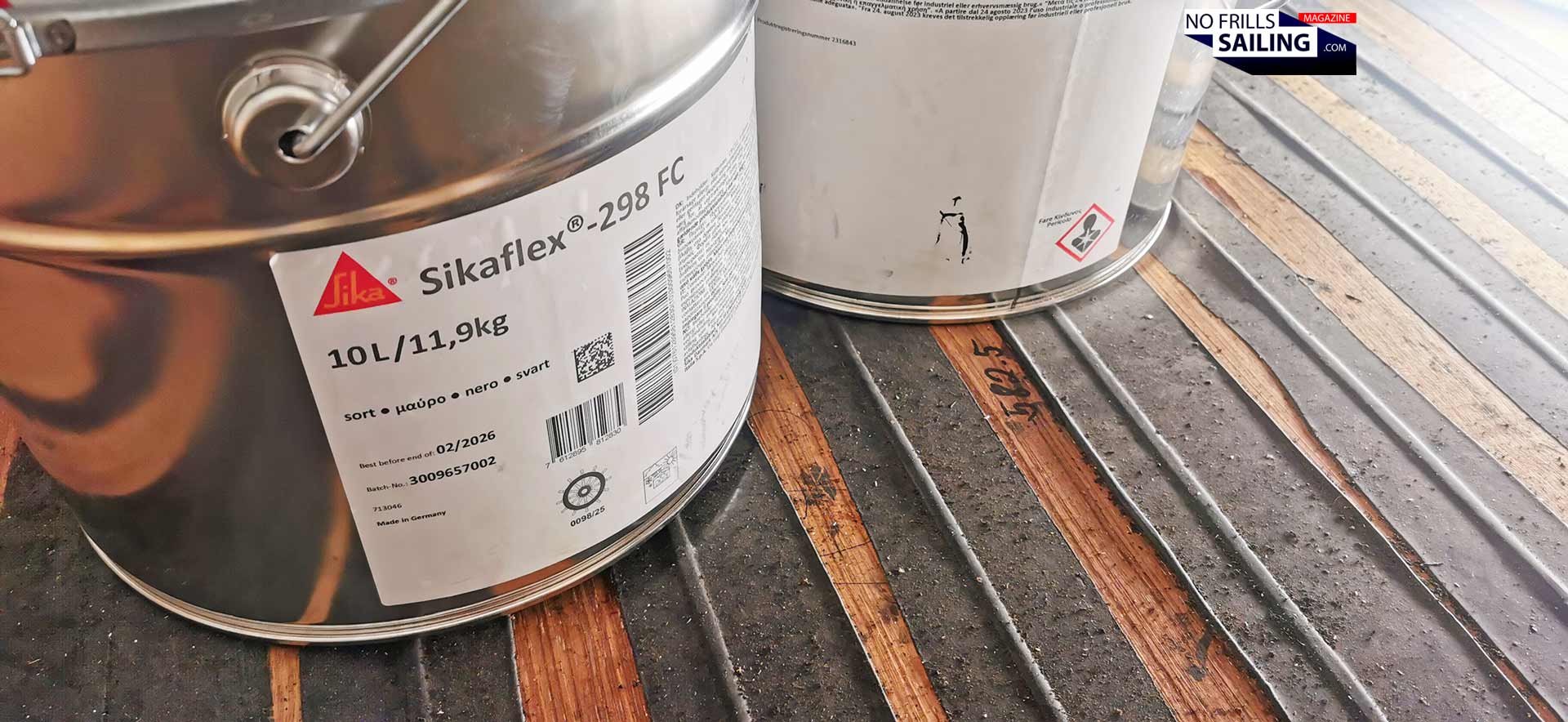 We enter another deck situated more to the bow near the large helipad of this yacht. Here the Tesumo deck installation is a step further in the process. It has already been laid completely as has the raw caulking been done. I am surprised to see an old acquaintance: Sikaflex! I don´t know what I was expecting, but I had to smile for myself that these high-grade professionals are also working with our beloved Sika-products.
