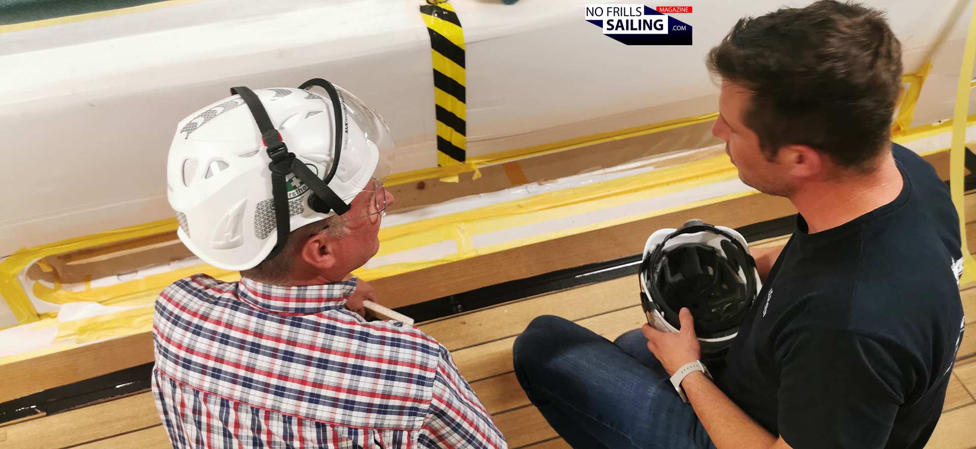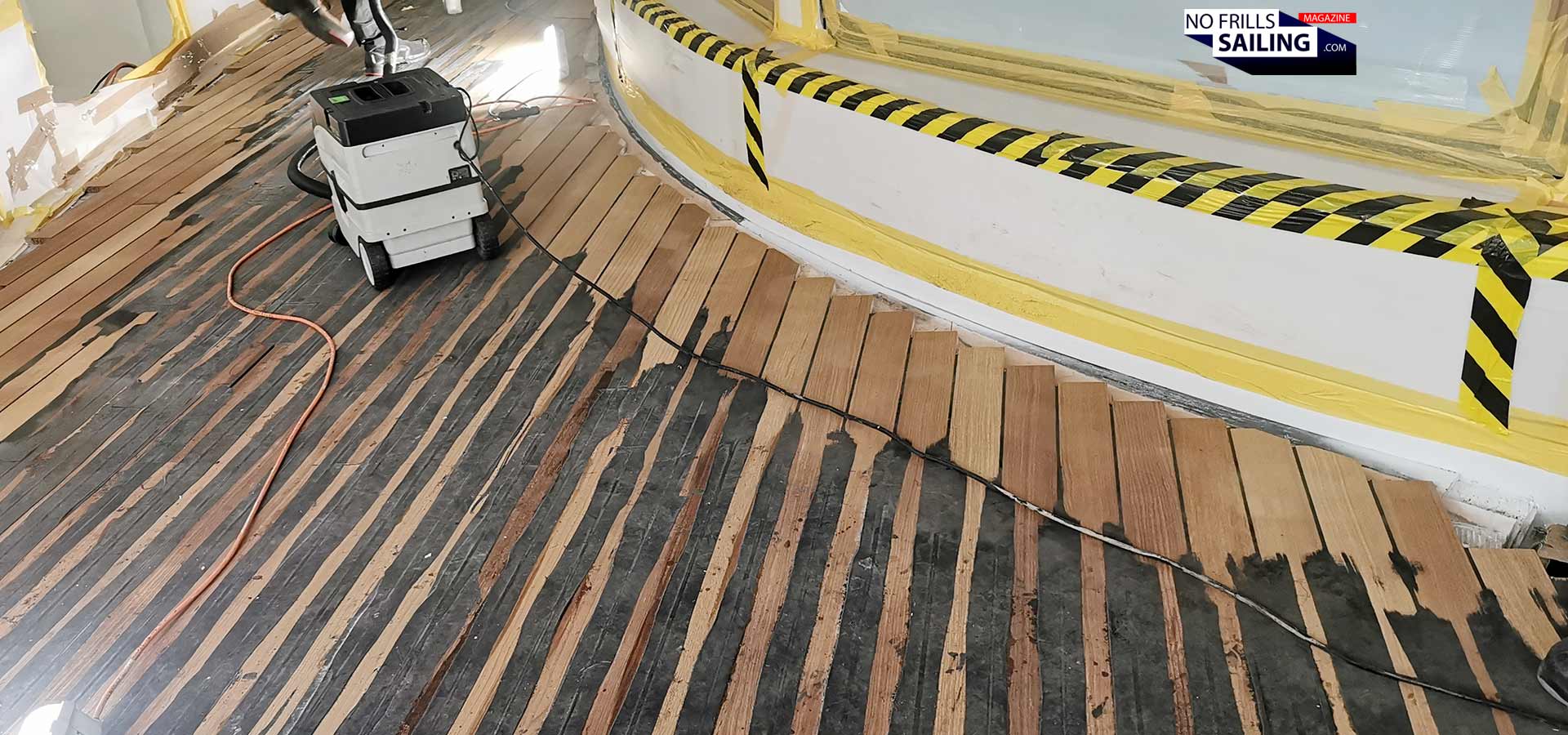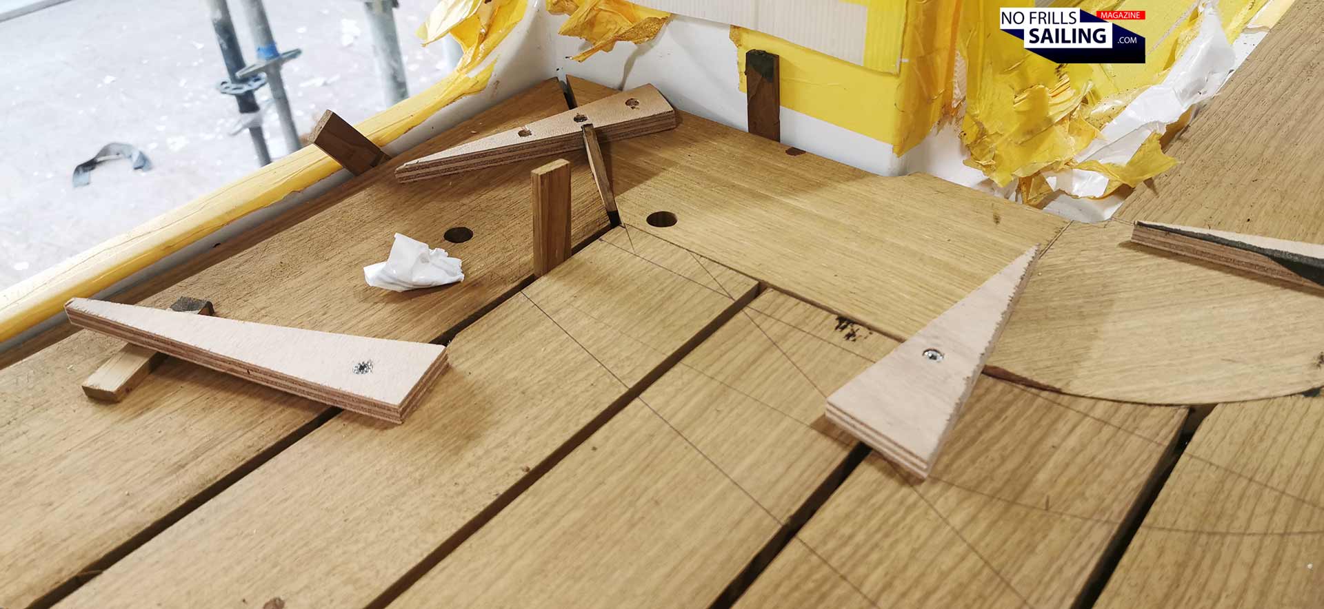 So, the first step is to cut the overlapping material of the square planks into the rounded shape of the structure the coaming will later follow. This is why on the edges of this part of the deck the caulking has already been sanded off, laying bare the deck planks. Again, the transformation of such a rough – and admittedly not very beautiful – area into the fine, almost artistic beauty of a proper coaming is something only the best craftsman and shipwrights. And I am about to meet one.