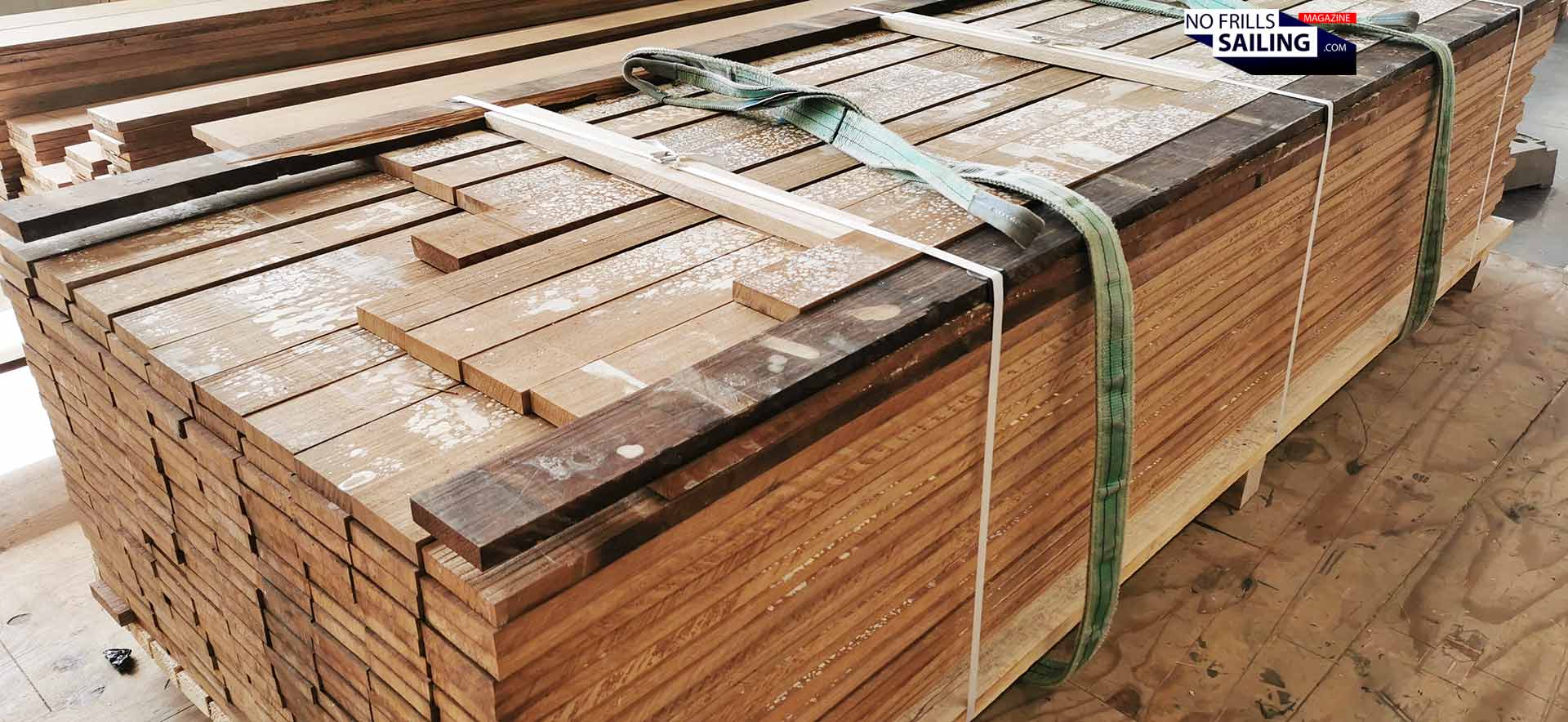 When you´ve read the first article on Tesumo-production, you have learned that the producer itself has a very strict regiment of quality management. With a still relatively high scrap rate starting at the raw Limba delivered, Tesumo produces 3 qualities of their end-product. Tier 2 and 3 are utilized in home improvement, facades or for pontoons, only Tier 1 quality is accepted to be shipped to Tesumo´s clients, just as Lürssen or Vitters. Frank shows me one of these shipments – processed Tesumo as it arrives at the shipyard.
