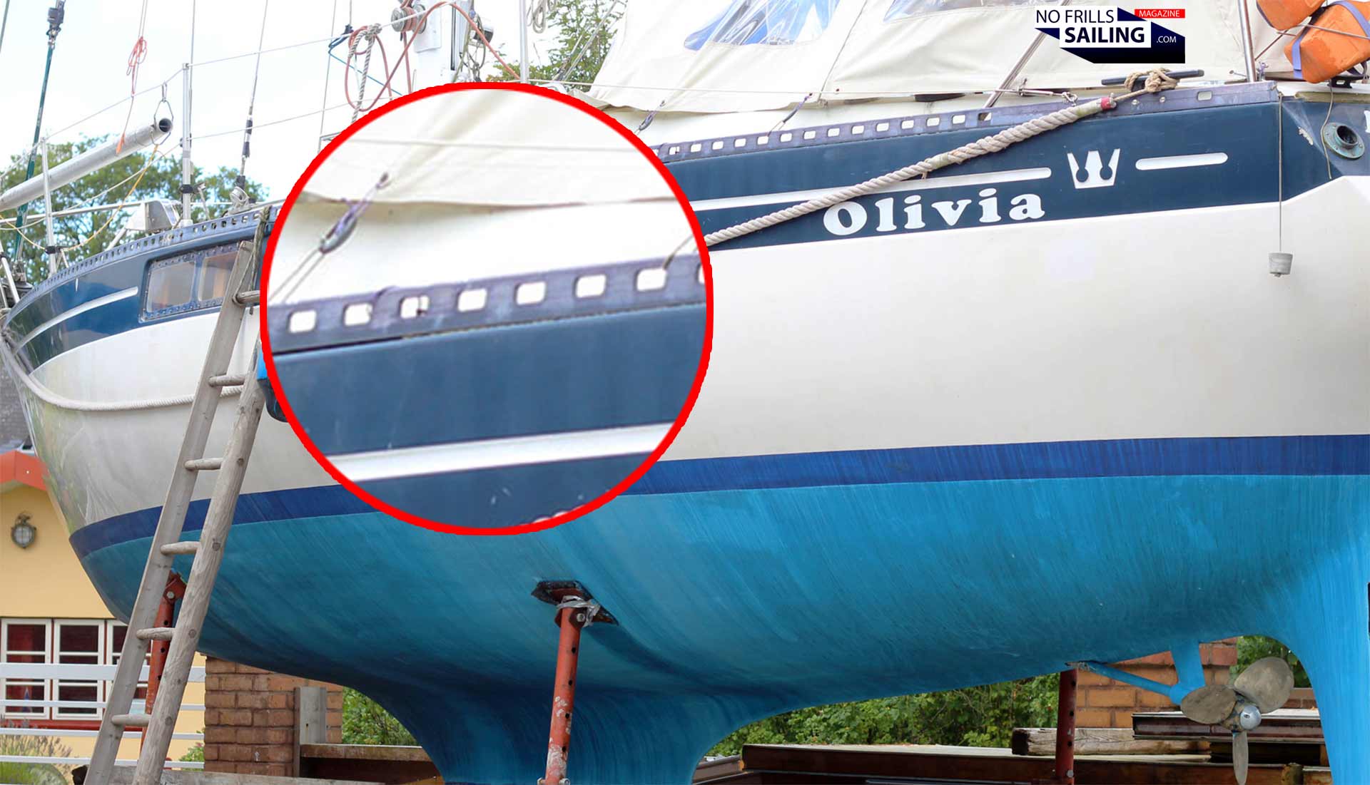 But in order to exert the most effective way, meaning have the pressure of the screws distributed evenly throughout the whole length of the joint, a toe-rail is needed. You might have seen these in older or “classic” sailboats, metal rails have been common in GRP-shipbuilding up until the late 90ies. Mostly, these rails would have featured cutouts, like the one in my first ever sailboat, the wonderful Pelle Petterson-designed Kings Cruiser 33 as you can see in the picture below: