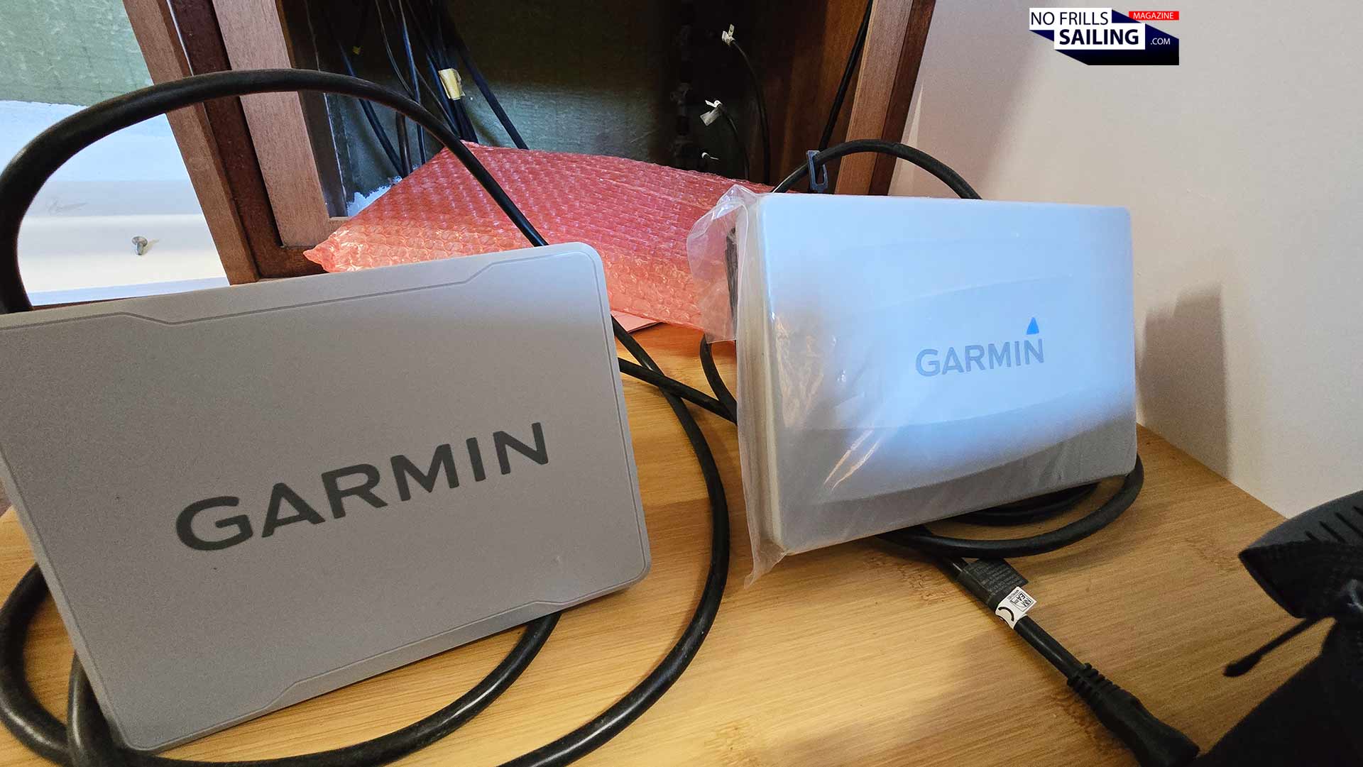 Also, the complete wiring for the NMEA-2000 network has been fitted and now the guys start to set up the Garmin equipment. First they do it “rough” to check it everything works out, then the cables go live and disappear in the ducts behind the panels and underneath the furniture. Although I tried to reduce all of my electronics to a minimum, there´s a number of displays for telemetrics, the VHF of course and a little central display to run the network´s updates and calibations, because I do not have a dedicated chart plotter aboard the boat.
