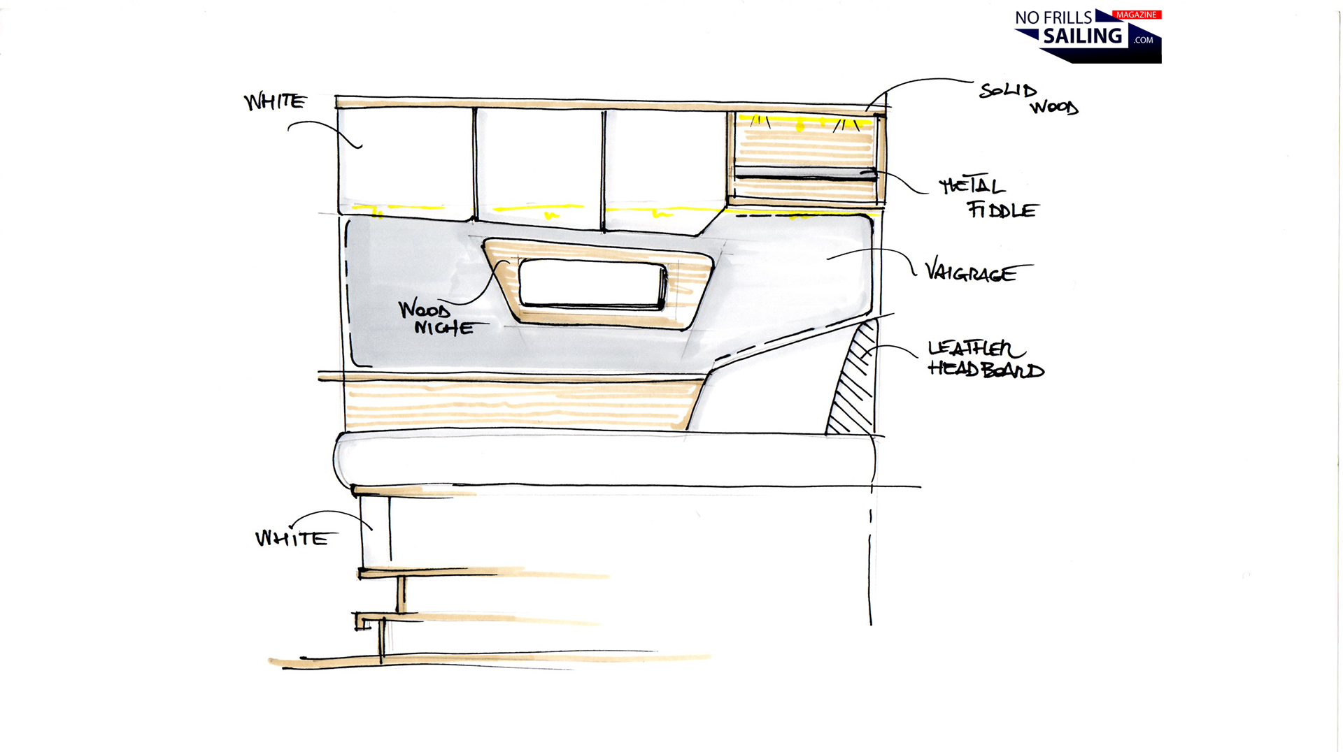 Lars Reisberg | NO FRILLS SAILING.com: “Yes, it was strange at first, because the Dufour 41 was kind of different inside from all the other boats. But then I noticed a pattern. Or a signature, let´s say. To me it seems like the shipyard has granted you more freedom and free reign to decide … is that true?”