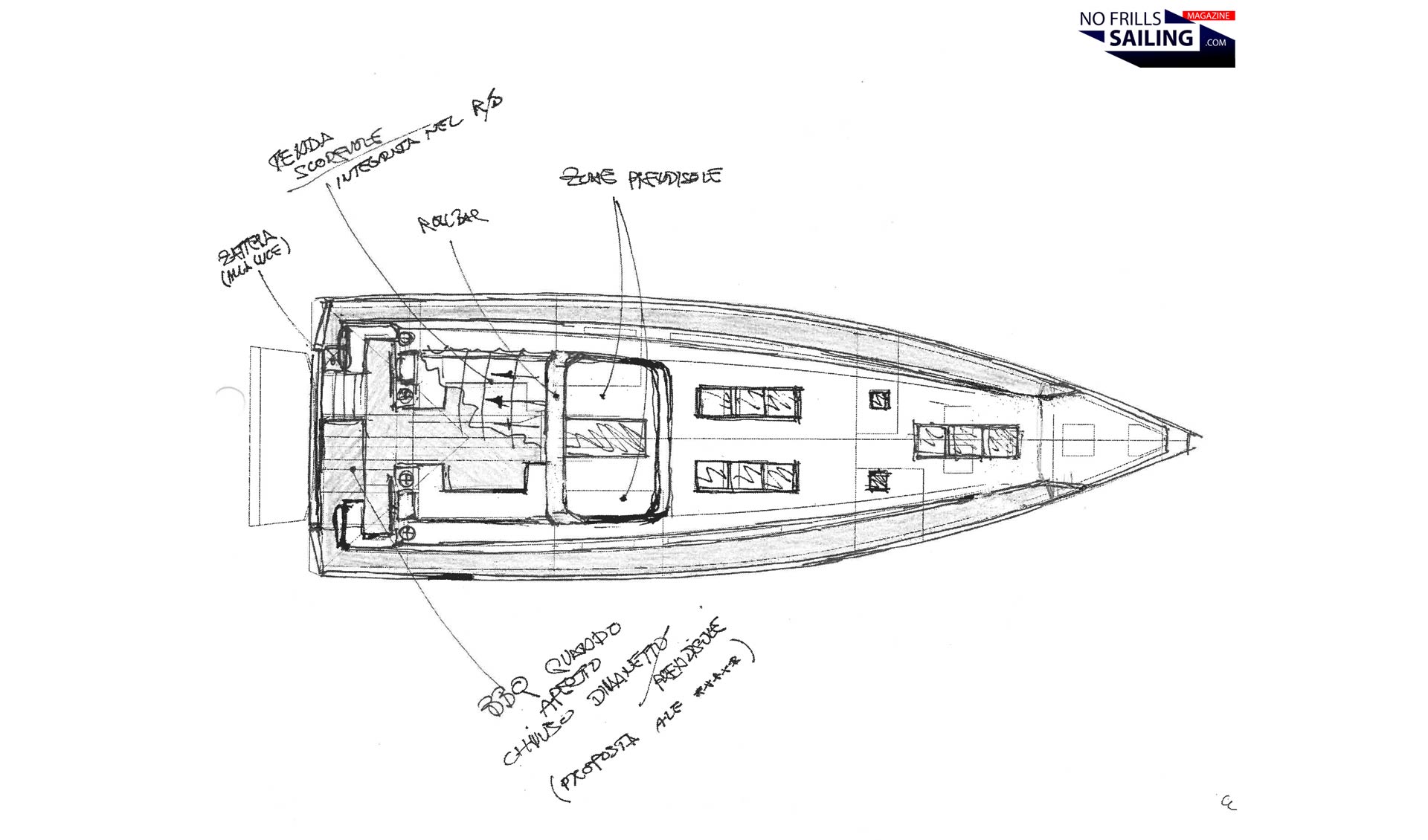 Lars Reisberg | NO FRILLS SAILING.com: “So that´s how it all started. A simple call. Now, Maurizo: From the classic Farr or J&J cruisers it´s a really big, big step to your edgy, very modernistic shapes and lines of the C-line – can you tell the story of how you invented this style? What were the main ideas behind the shapes?”