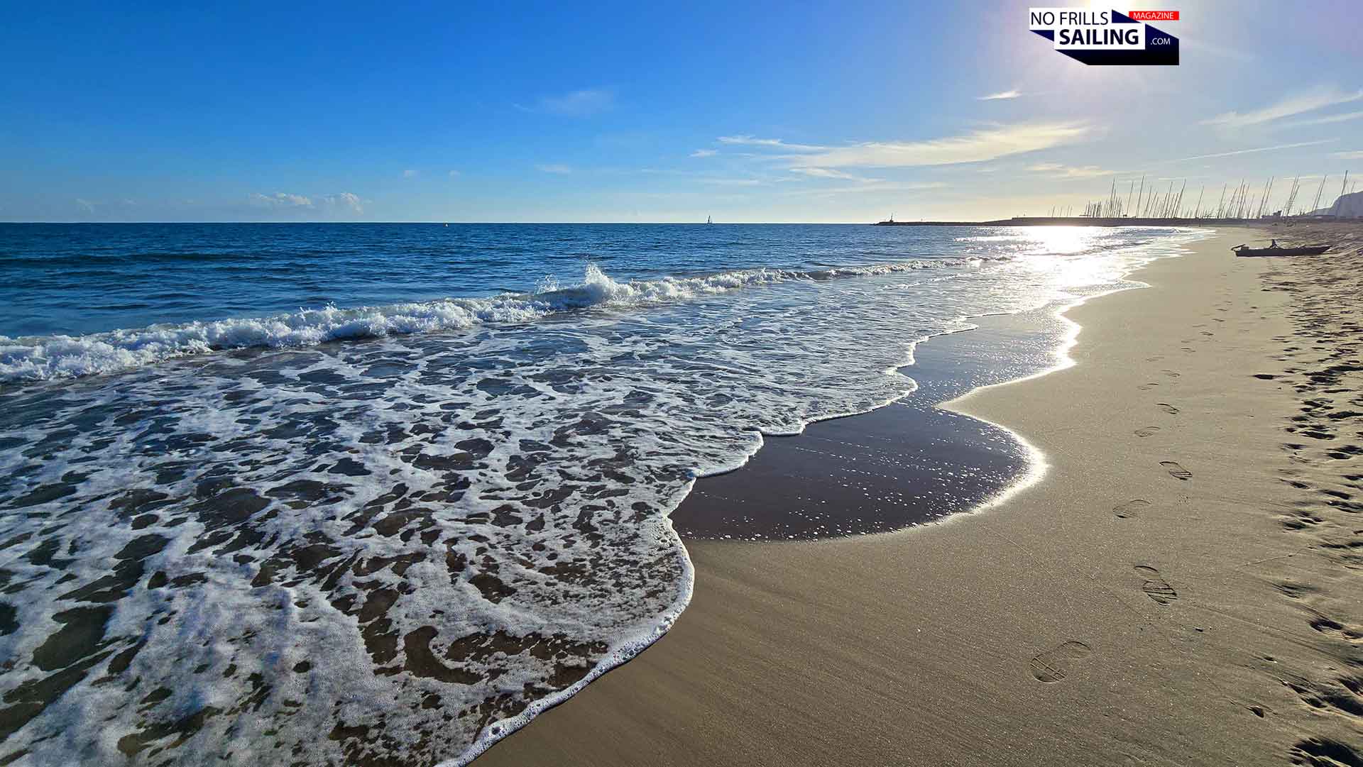 It was a beautiful day, about a week ago. Port Ginesta, Castelldefels. Not far from Barcelona. I walk back to my hotel room, barefoot. The sand is warm, so is the ocean that frequently gently floods my feet. Behind me the tips of the riggings become smaller and smaller, inside my head I try to sort my impressions: Having arrived two days ago, Just yesterday I have sailed with the new Pure 42 aluminum yacht. Today I briefly returned to take some more shots, ask questions, focus on details.