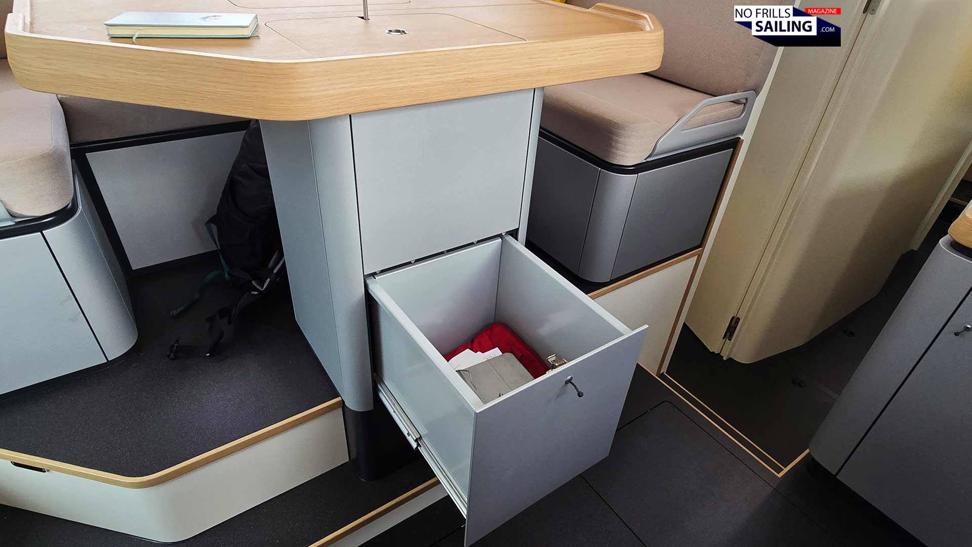 The Pure 42 is a boat that is not only capable of taking you anywhere you want in a very safe manner, she is also predestined to serve as a mobile office for remote working. 42 feet is a big yacht in my world, certainly right for a sailing couple or a small family with one or two kids discovering the world during a sailing sabbatical for example. A small feat like this workstation in the saloon points to a whole folder of possibilities with this boat. All you´d need is a Starlink (or) or other forms of connectivity – and off you go!
