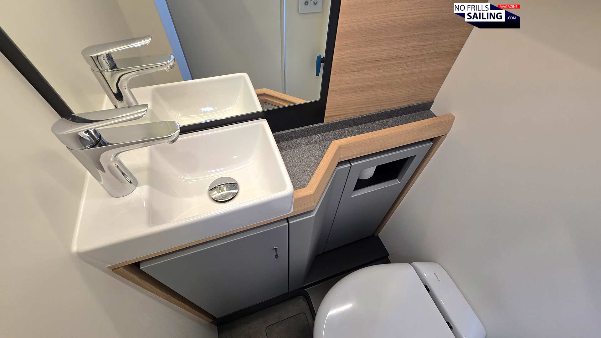 The toilet felt like being placed “in the middle of the room”, forcing you to dance around it when wanting to get into the shower or to the sink. Likewise, when sitting on it, it felt awkward imagining the boat making its way through heavy waves – the bathroom is indeed large, so where to grab a safe hold? So it was decided – not lightheartedly – to move out the toilet and sacrifice the open starboard area by fitting a little daybath. This is how the starboard-side toilet came into being.