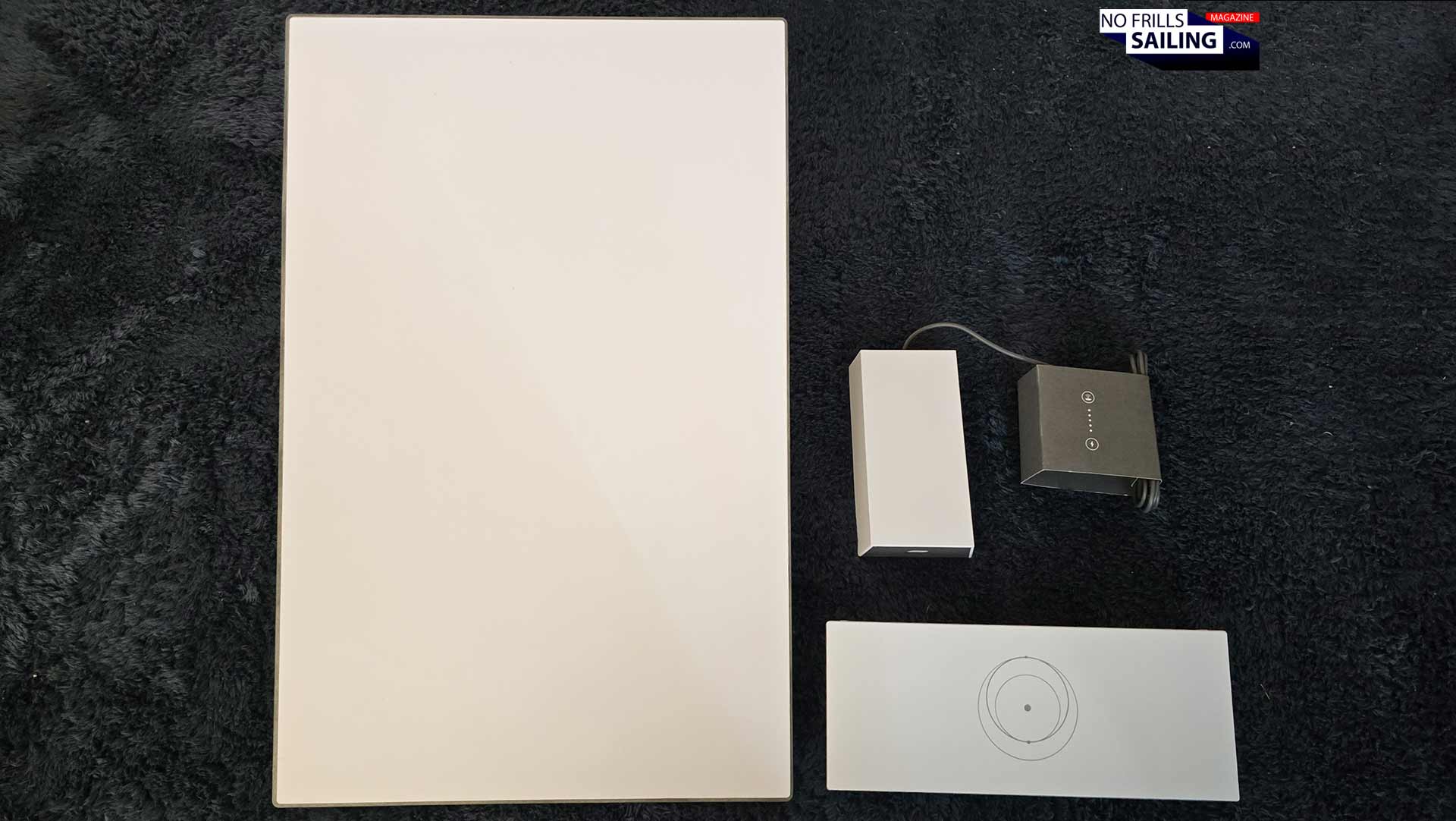 The box arrived a few days after order in perfect shape. As a die-hard Amazon-fanboy I really love those pull-up packages and immediately ripped open the cardboard box. First thing on top is the satellite dish, which is surprisingly lightweight. That´s a good thing because we don´t want to have heavy stuff mounted to our pushpit, right? Underneath are the secondary devices: The WiFi router and the DC current adapter. As well in the package are two cables. The first one is a standard 230 Volts AC-plug, converting this current down to 57 Volts DC. Later more on the currents-issue.