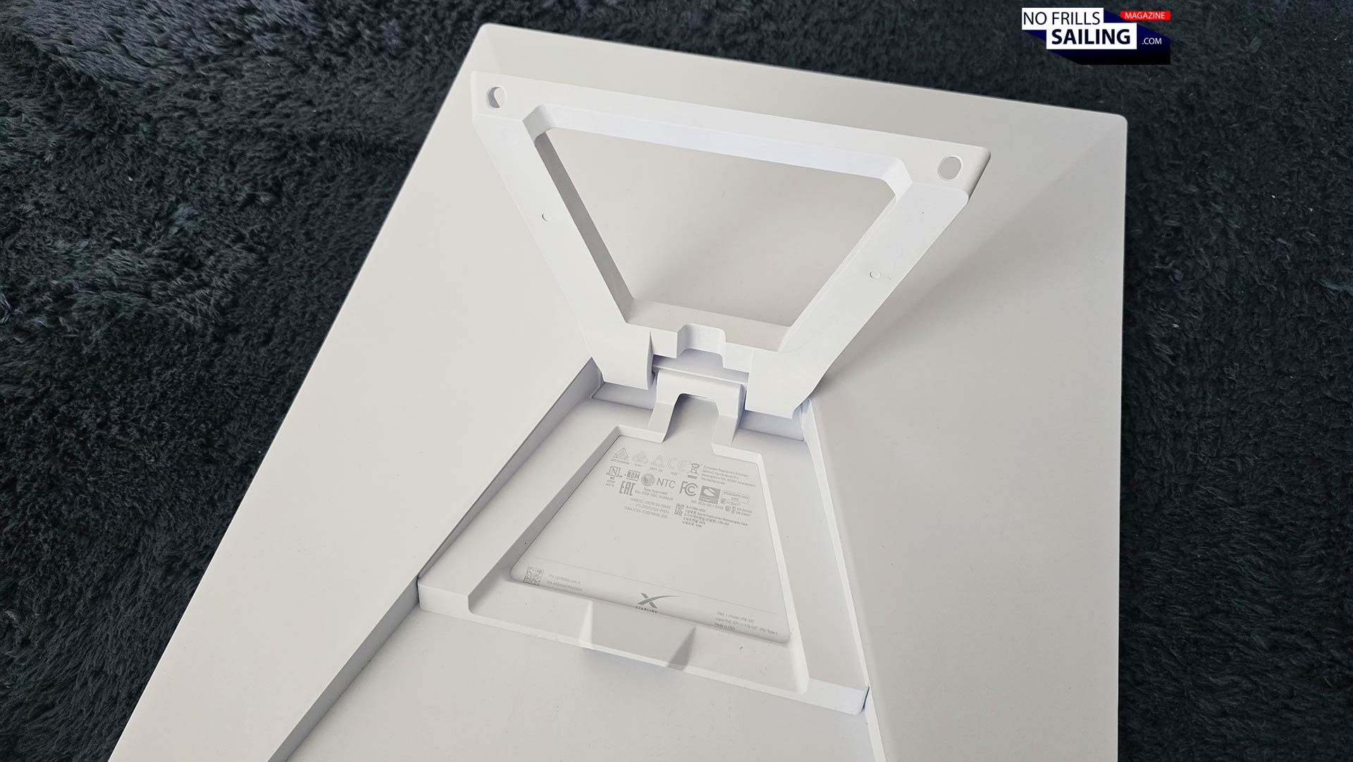 All of those parts make a very nice impression. Apart from the light and a bit fragile appearing dish, especially the router and the power supply brick appear being made of good quality. At least the label tells me it has been “Made in the USA”, we will see if this is a quality sign or if I wish for the good old Chinese high-tech quality again. Lastly, there´s a huge assembly “manual” that shows a very, very simple plug & play-sketch of how to connect Starlink and get started. I I had a data plan, I would have, but in not having one now, I put everything back into the box again.